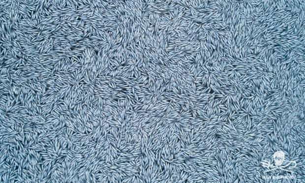 Изображение, опубликованное Sea Shepherd, на котором изображена плавающая масса мертвой рыбы возле Франции - The Guardian