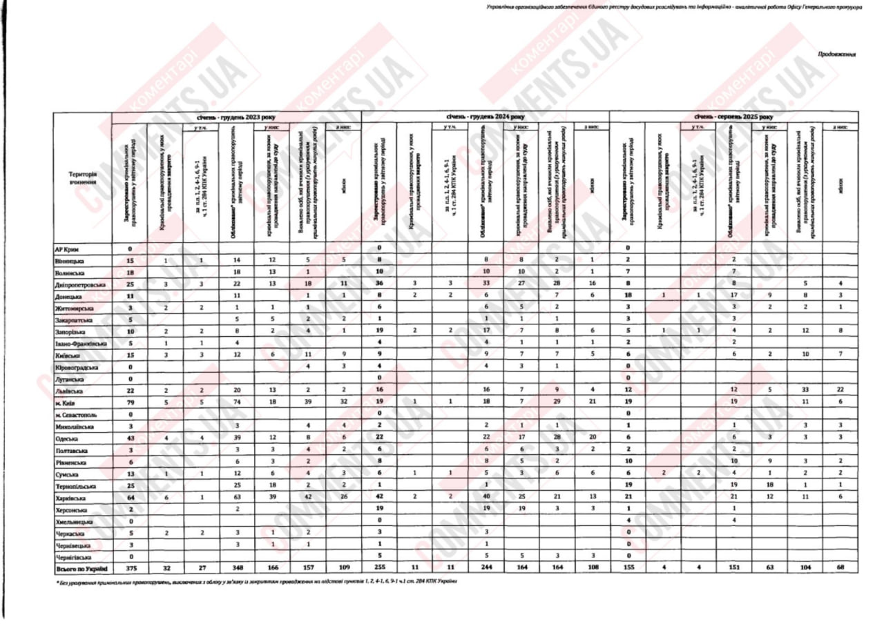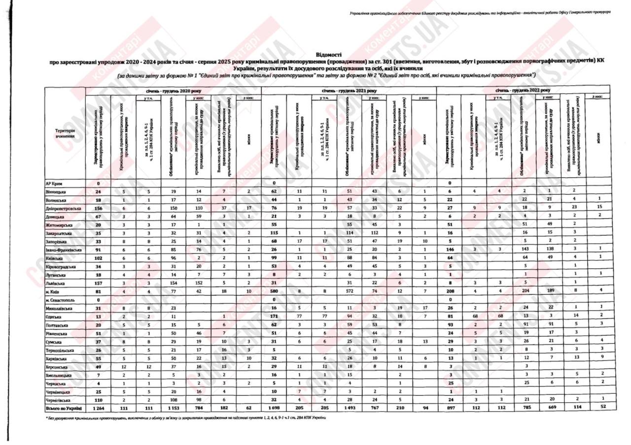 Интересно, что в 2021-2023 годах наибольшее количество уголовных производств по ст. 301 УКУ открывали в Киеве, а в 2024-2025 годах первенство в западных областях — Львовской и Закарпатской.