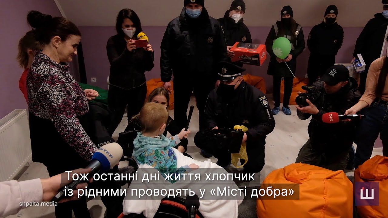 "Он пишет пальчиками на гаджете. Мы его спросили, о чем он мечтает, что его сделало бы счастливым и заставило бы улыбнуться. Он ответил одним словом: "Полиция". Полицейские — его кумиры. Он сказал, что обязательно станет одним из них, когда вырастет", — так прокомментировала ситуацию волонтер, которая работает в "Місті добра", Марта Левченко.