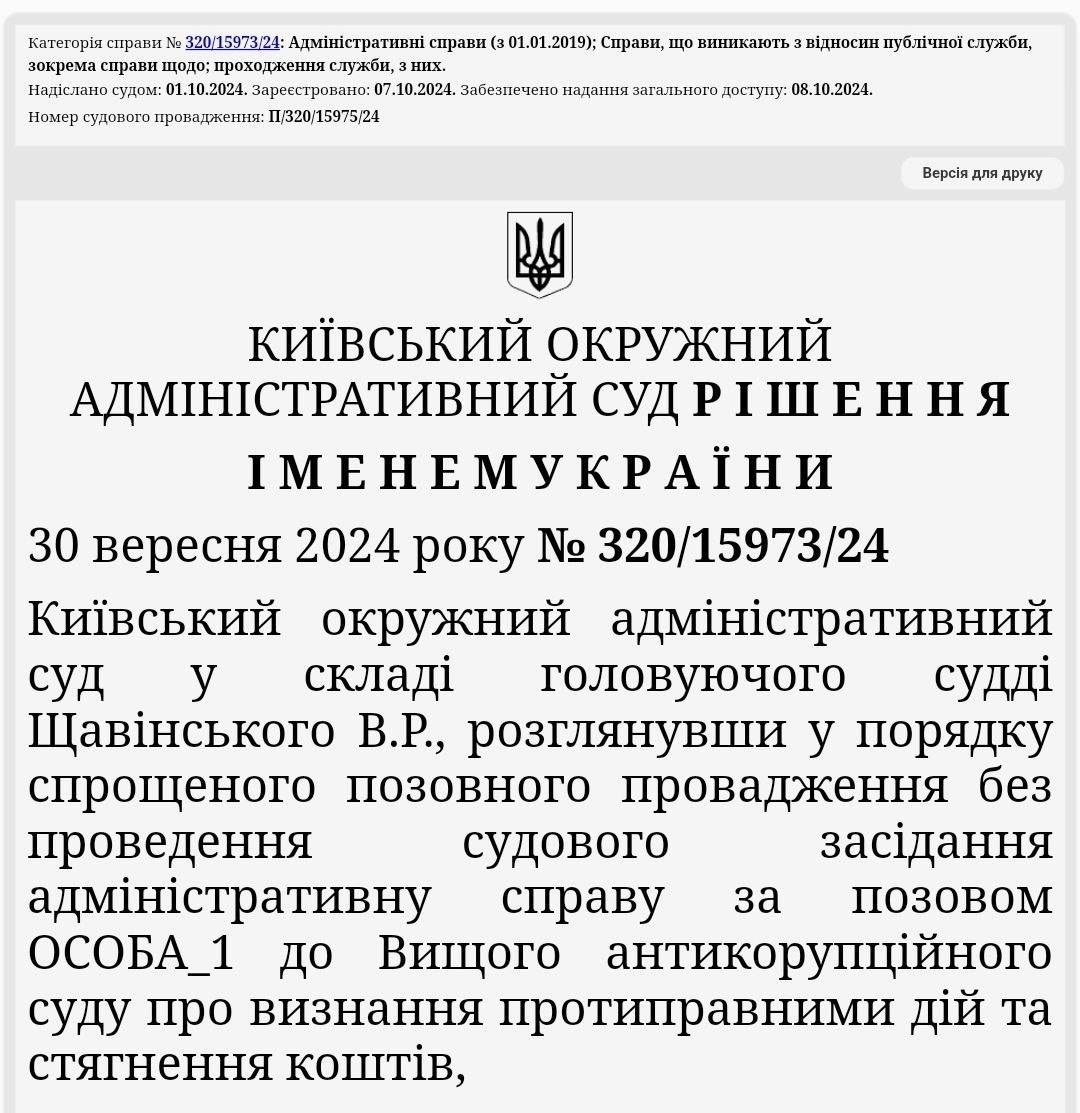 Судьи Высшего антикоррупционного суда с зарплатами более чем в 150 000 гривен массово отсудили у государства миллионы доплат. Руководитель аппарата ВАКС Крикливенко мог оказать содействие им в этом, написал народный депутат VIII Борислав Береза.