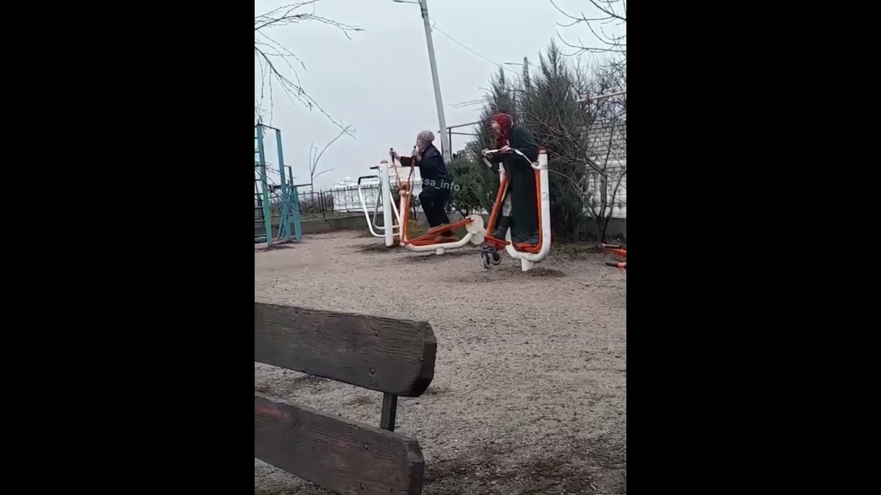 В місті Одеса дві місцеві пенсіонерки, перебуваючи на спортмайданчику,показували витривалість, свій бадьорий дух, незважаючи на вік та те, як усім потрібно дружити зі спортом. Відеоролик, де поважні одеситки, виконують на свіжому повітрі різні спортивні вправи, опублікований в Telegram-каналі "Одеса INFO".