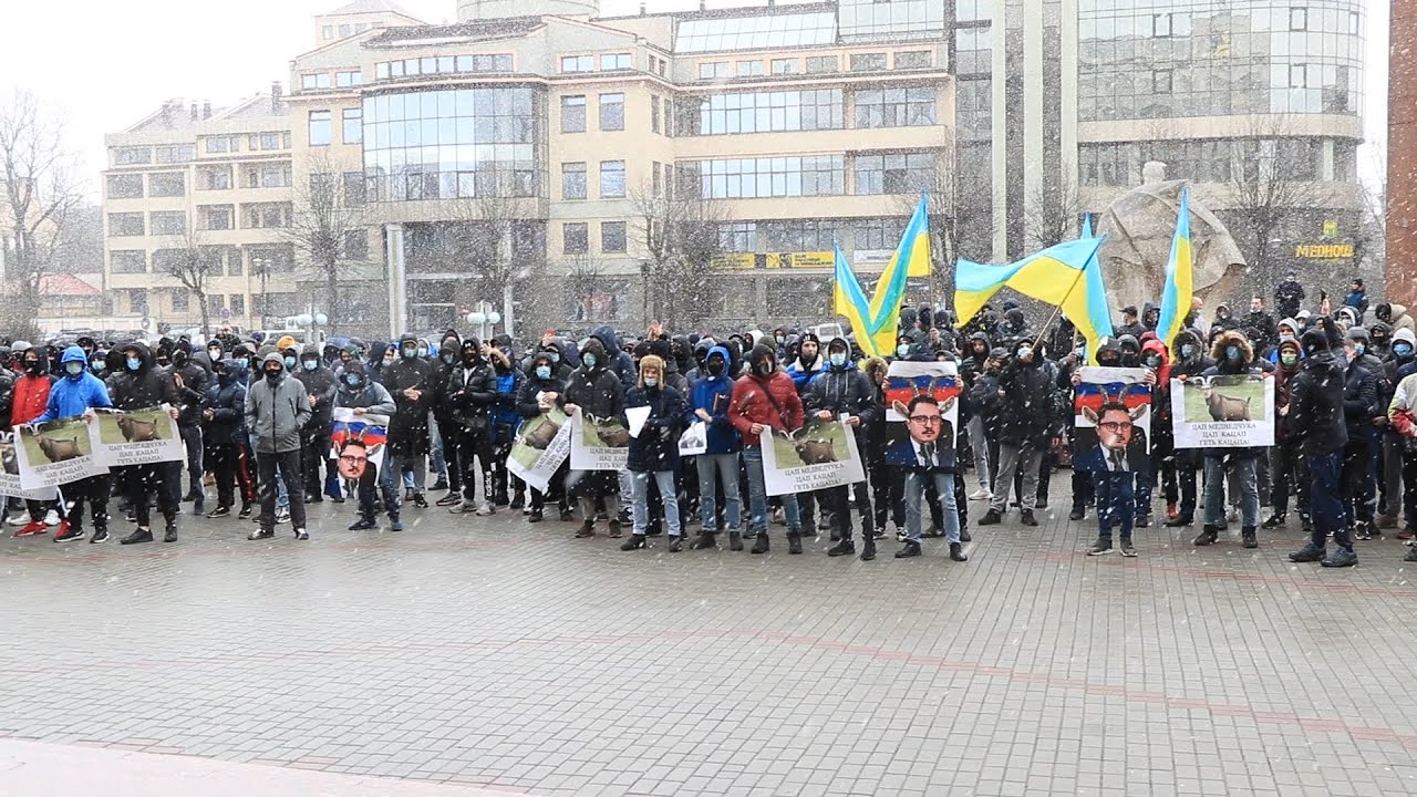 Мітингувальники вимагають, щоб президент Володимир Зеленський приїхав в Івано-Франківську область і доручив СБУ перевірити Бойчука на причетність до зв'язків з Віктором Медведчуком і ФСБ.