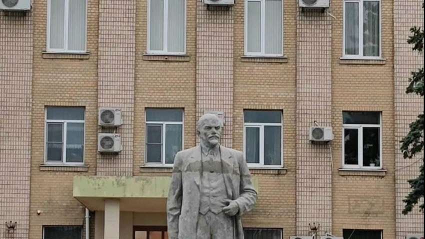 Привертають увагу відразу кілька нюансів. По-перше, встановлений пам'ятник Леніну – це не той пам'ятник, який до декомунізації стояв у Генічеську. Пам'ятник окупанти роздобули інший. По-друге, як видно із фото. Над адміністративною будівлею окупанти встановили одразу два прапори – російський та червоний. Пам'ятник Леніну вийшов як конструктор, бо видно, що його збирали з трьох частин: ноги, торс і голова.