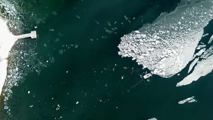 Вона зняла з дрону, як її чоловік самотужки зрушив кригу і відправив її до архіпелагу. "Операція з пересування айсберга" — жартома назвала вона їхні дії.