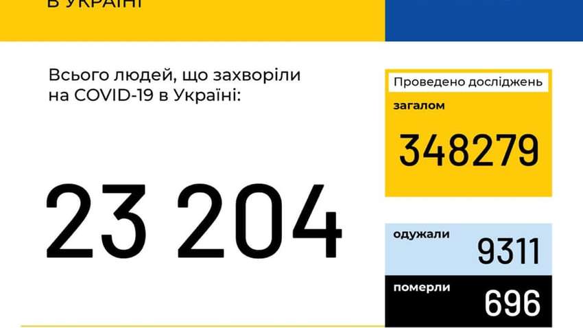 Станом на 9:00 30 травня в нашій країні з-за коронавіруса вже померли 696 чоловік. У той же час 9311 осіб одужали.