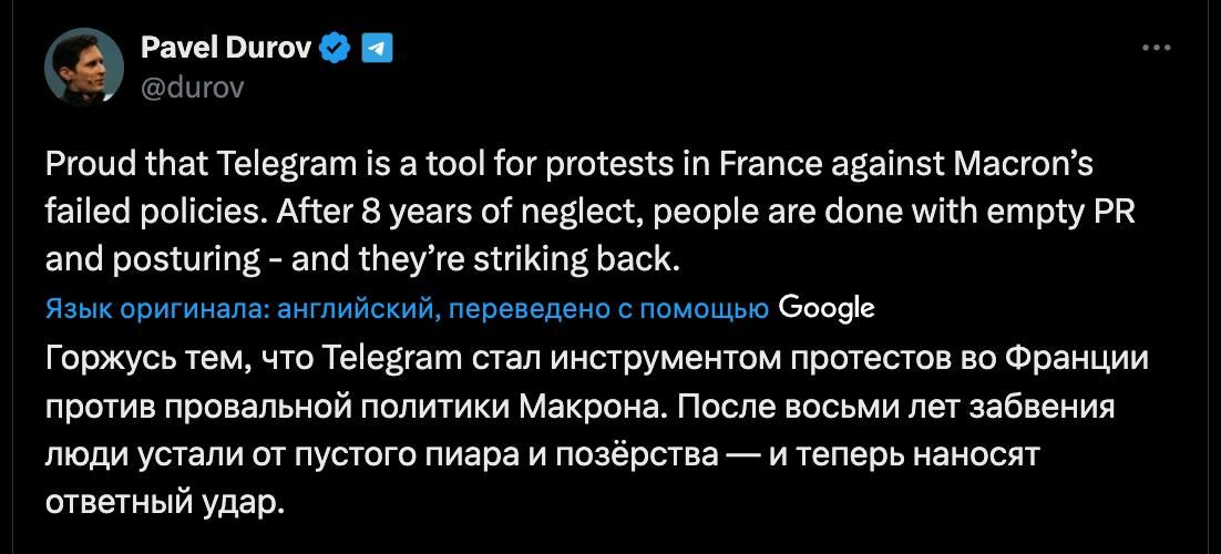 Учасників демонстрацій підтримав засновник месенджера Telegram Павло Дуров.
